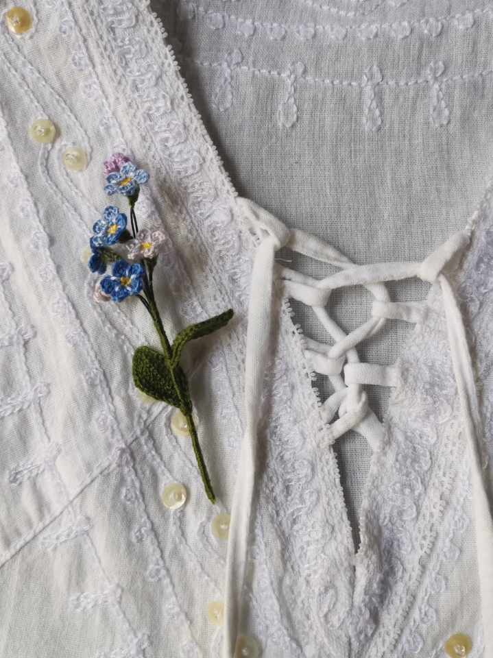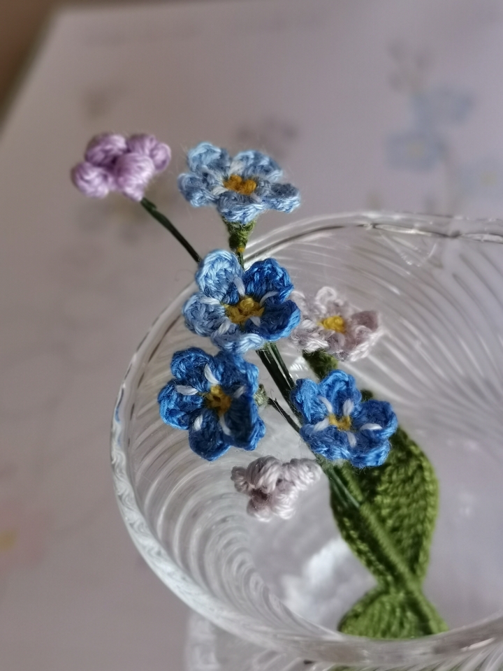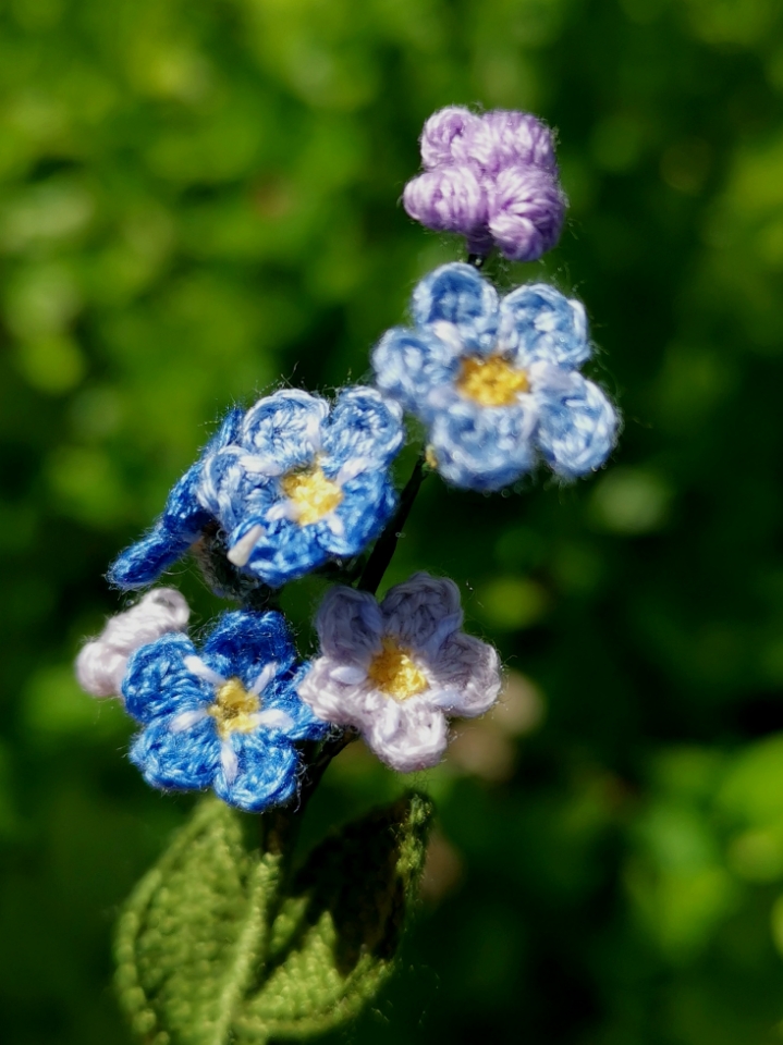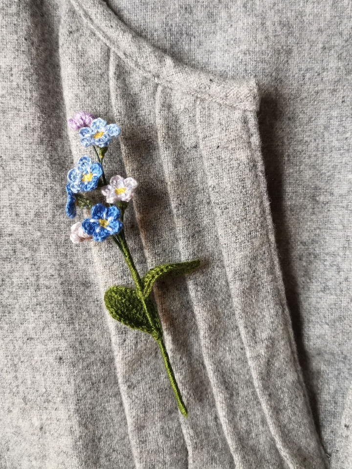 If you have not tried to crochet something seriously small, this is the pattern for a good challenge. These tiny flowers have all components a much bigger sized flower has: a sepal, a pistil and petals. Further to the attraction they are in comparably rarer blue shades. Best of all is the meaning comes with it. It is a top choice of handmade gift to someone of true love.