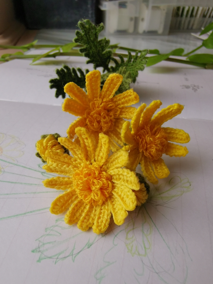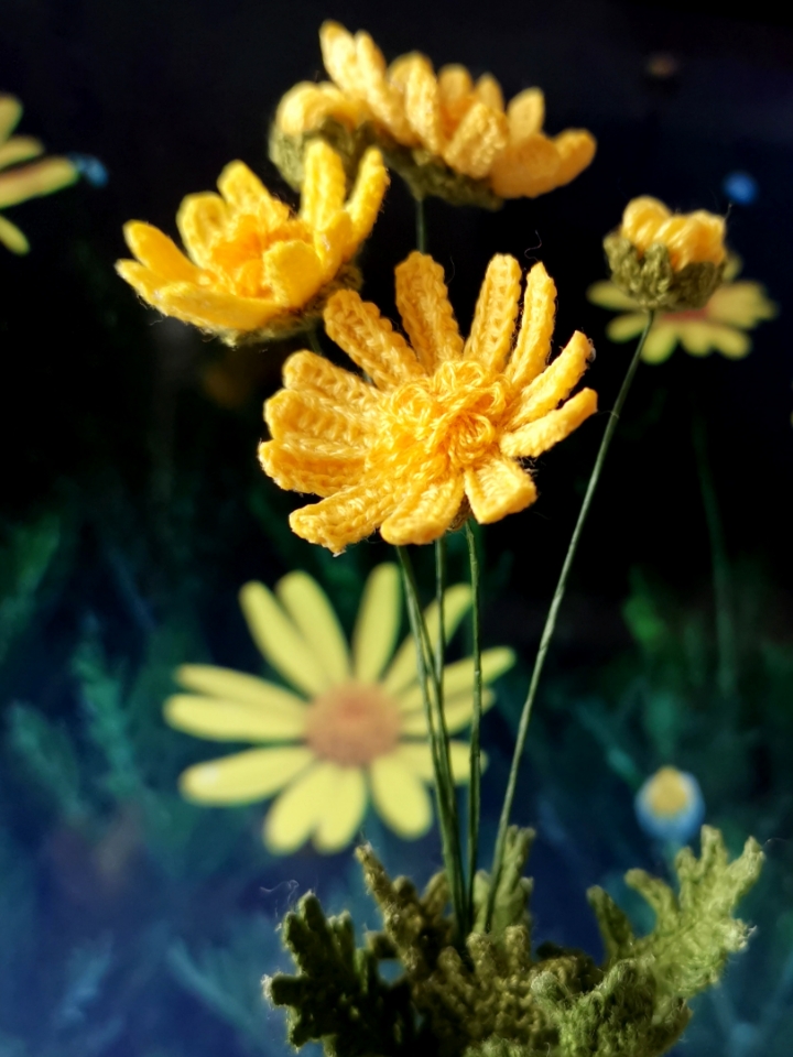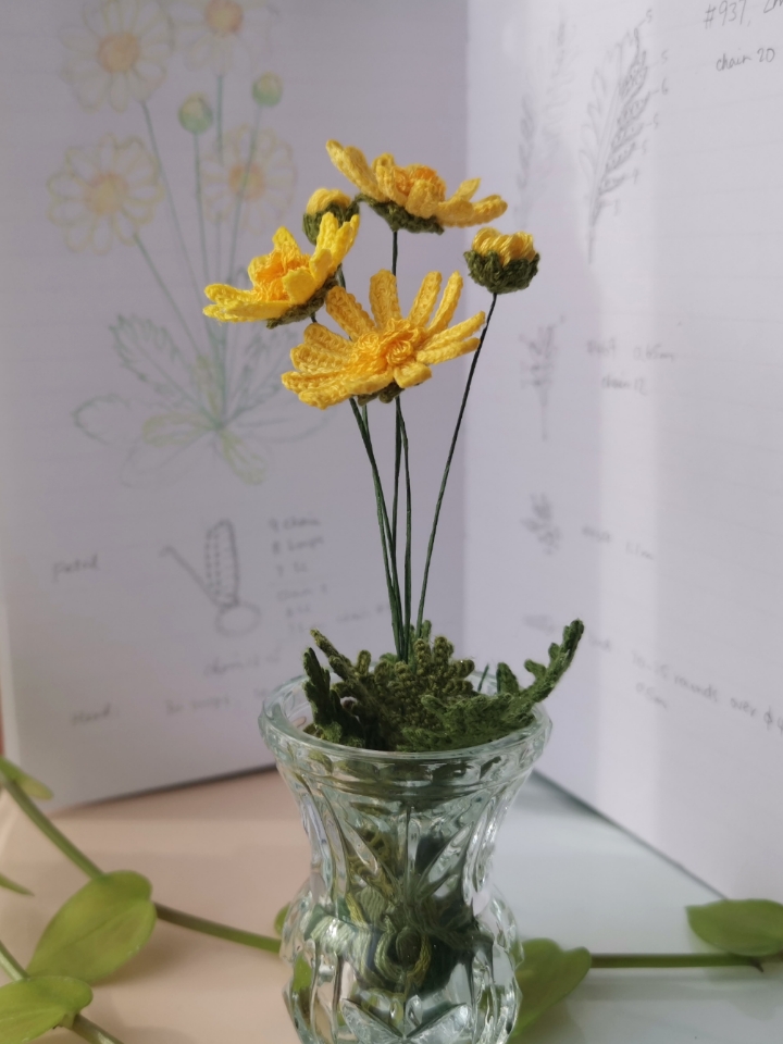 Though there is an increased level of difficulty in making these flowers, Euryops Daisy turns out to be surprisingly stunning as the result of the energetic color and the stylish lacy leaves! Comparing to the genetic simple & elegant style of daisies, this pattern has the added delicacy created purely by making techniques.