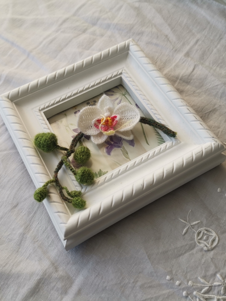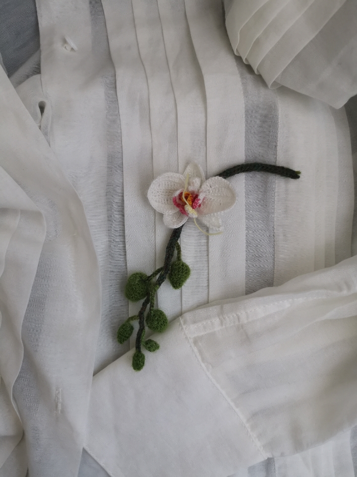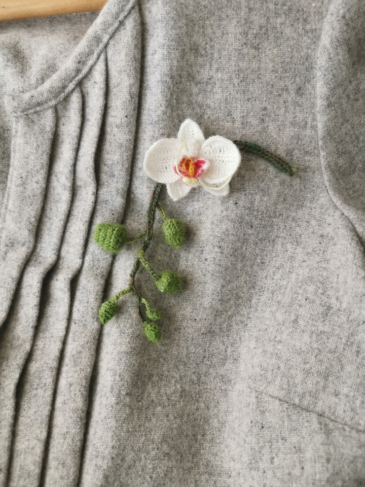 Orchid has become an obsessively popular interior design fixture for its noble style. The thick velvety texture of both flower and leaves makes it ideal for a crochet project.
