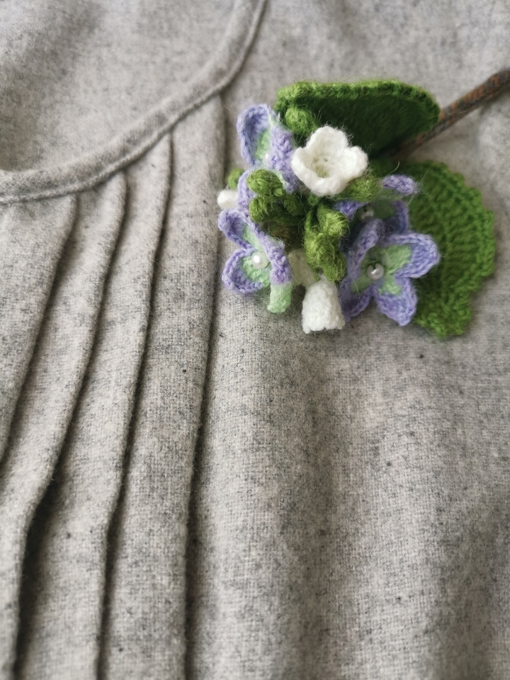 Today’s repertoire is this classic cluster flower. Hydrangeas make impact in garden design by color and volume. So do they as fashion accessories. However as a crochet artwork, a full sphere of packed blooms can look way too solid to attract attention on its delicate little florets. We’ve done some smart alterations to make this desirable flower not only admired by its color and volume, but also by its true beauty.